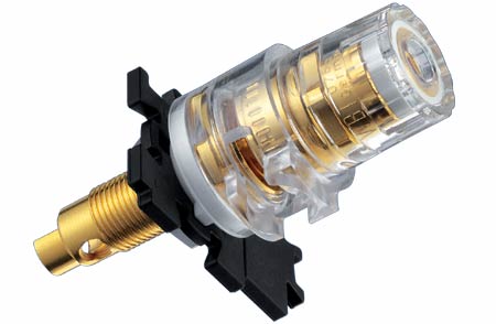 Spades and crimped cable ends (up to 6 mm²/ 9 AWG You can use the patented WBT clamping nut system to make high-pressure spade and crimped cable end connections.